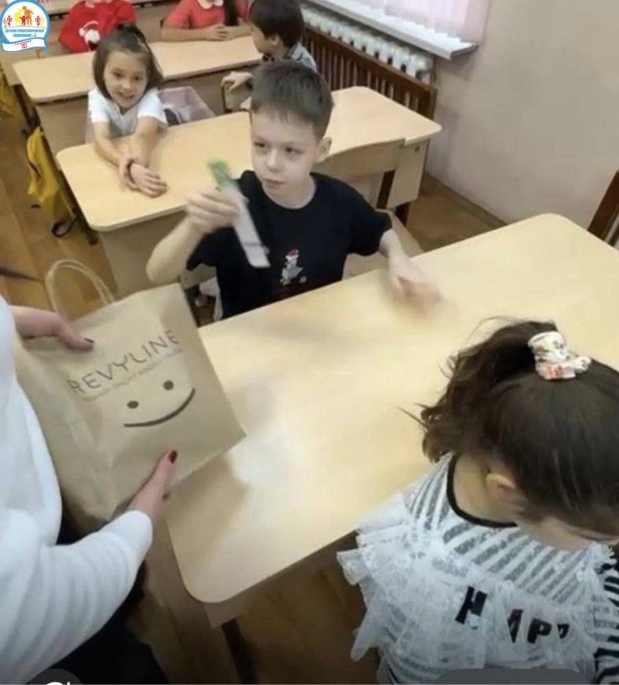 По окончании урока здоровья, врач вручила детям стоматологические подарки — зубные щетки.