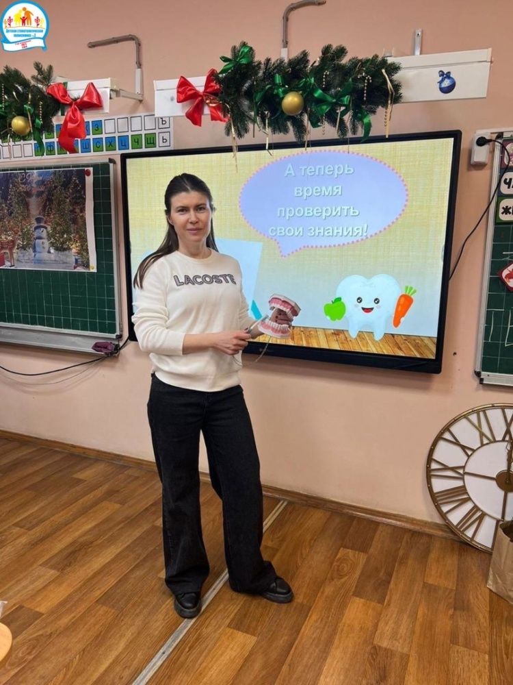 В преддверии нового 2025 года, врач-ортодонт Детской стоматологической поликлиники №3 г. Уфа Алина Касаткина, находящаяся в декретном отпуске, провела урок здоровья для учащихся 2 класса МАОУ «Гимназия № 39 им. Файзуллина А.Ш.».