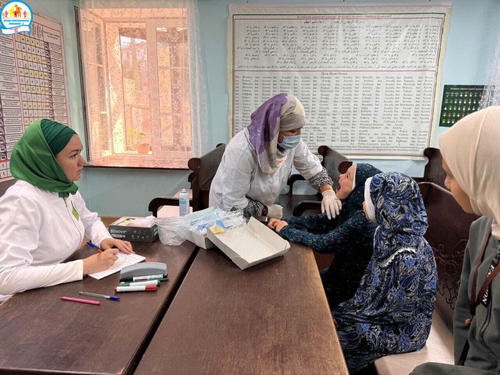 По приглашению председателя Совета матерей «Материнское сердце» Гульшат Ибрагимовой, заведующие отделениями Роза Азнагулова и Гульназ Садыкова провели стоматологическое обследование слушателей детских летних уроков «Изучаем Ислам» для школьников в возрасте с 7 до 17 лет.