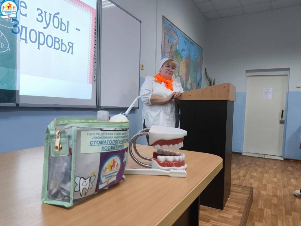Римма Ганиева совместно с заведующей стоматологической поликлиники Бирской ЦРБ Ириной Субботиной прочитали интерактивную профориентационную лекцию с ключевыми моментами детской стоматологической службы и стоматологии.