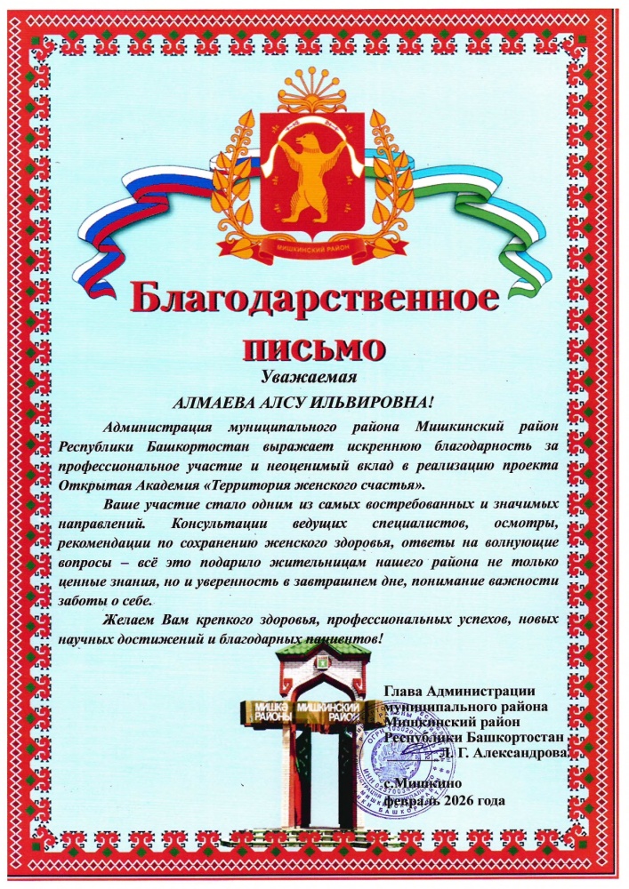 Благодарности врачам по результатам выезда в Мишкинский район Башкирии на передвижном стоматологическом комплексе «Тулпар»