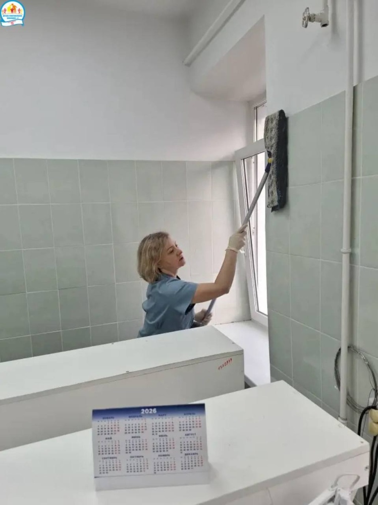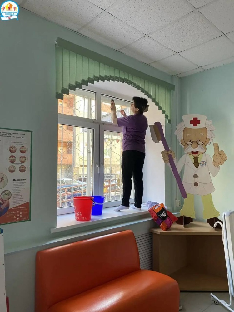 В течение недели сотрудники поликлиники наводили порядок в кабинетах и общих помещениях: проводили влажную уборку, мыли окна, очищали поверхности и организовывали рабочие пространства.