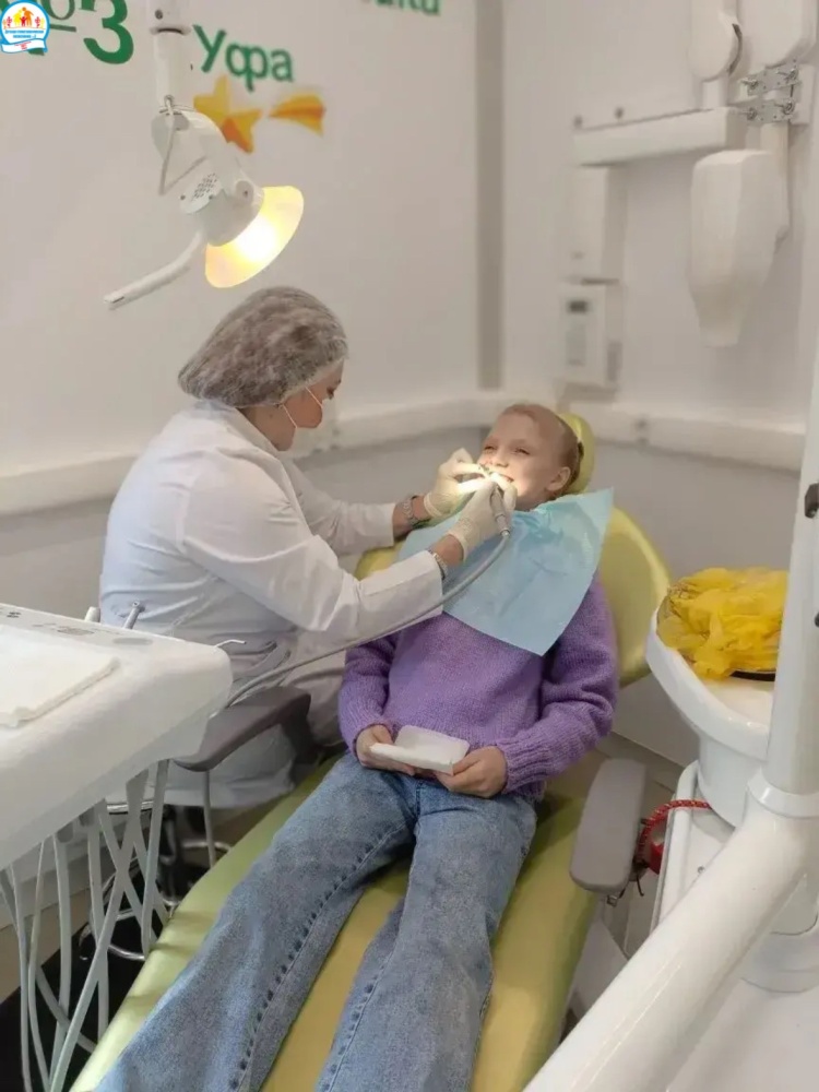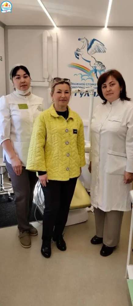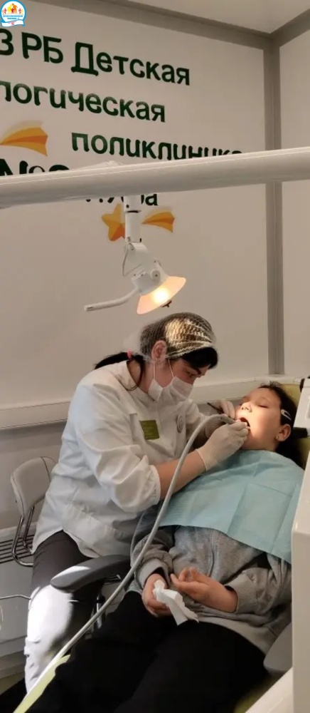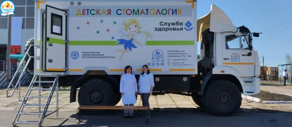 Команда Детской стоматологической поликлиники №3 г. Уфа в составе врачей Розы Азнагуловой, Ляйсан Байгускаровой на детском передвижном стоматологическом комплексе «Тулпар» трудится в Куюргазинском районе Башкортостана с охватом населенных пунктов в рамках Открытой Академии "Территория женского счастья".