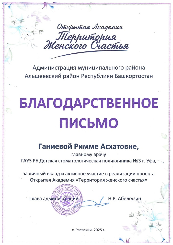 Благодарности врачам по результатам выезда в Альшеевский район Башкирии на передвижном стоматологическом комплексе «Тулпар»